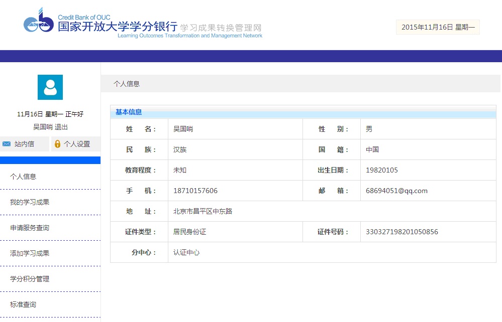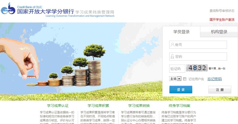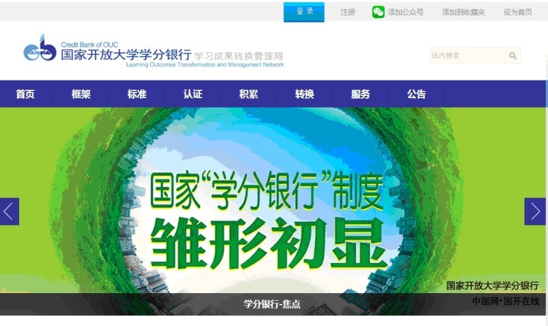 图1. 国家开放大学学分银行学习成果转换管理网首页