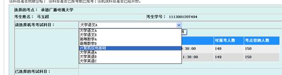 5、利用下拉菜单选择报考科目