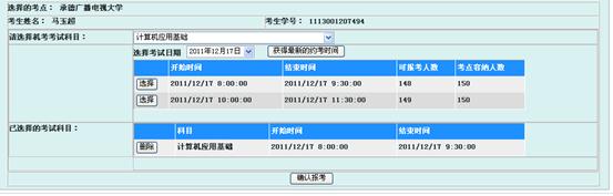 点“选择”按钮可以预约考试时间