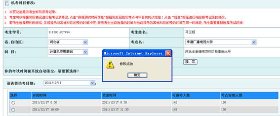 提示“修改成功”,时间预约完毕即可