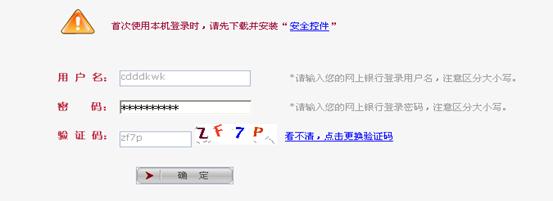 这里输入网上银行的用户名和密码,以及验证码
