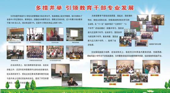 图为宽城县十年来教育干部培训成果展板
