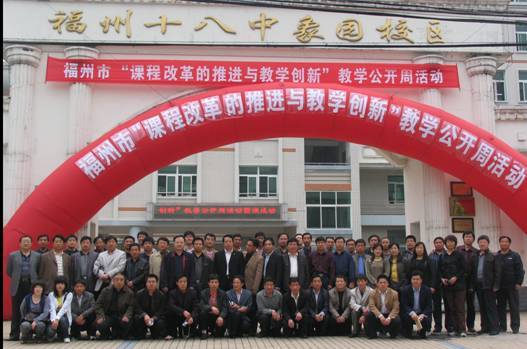 图为承德市中小学校长提高培训班学员在福州十八中考察合影
