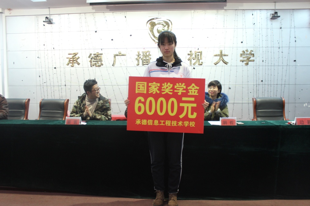 2019年12月20日,在教学楼六楼会议室,为17对口计算机(1)班的张雪莹同学颁奖,该同学喜获首届中职国家奖学金。今年的国家奖学金第一次颁给中职学生,我校学生就获此殊荣,这是莫大的荣誉。