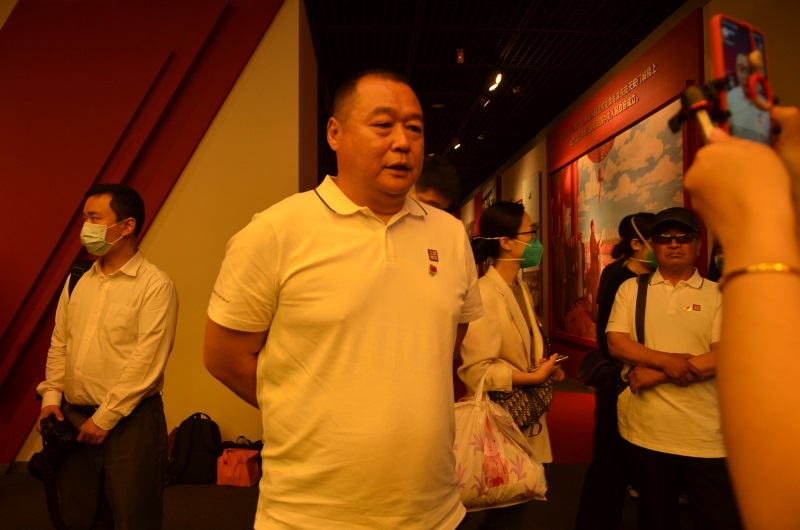 参观结束后,承德电大党委在展馆举行了隆重的老党员重温入党誓词和合唱歌曲《团结就是力量》活动,姚钢乾作总结讲话,活动后对新、老党员代表进行了采访,同时在“冀云”平台同步直播活动过程。
