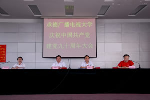 党委书记姚钢乾代表校党委发表了热情洋溢的讲话。他代表学校党委,向为承德电大发展作出突出贡献的老领导、老党员、老干部表示了衷心的感谢和亲切的问候,向受到表彰的单位和个人表示了衷心的祝贺,向新加入组织的同志表示了热烈的欢迎。在庆祝建中国共产党90周年之际,他号召全体教职工团结一致,振奋精神,为推动学校各项工作的全面深入,实现电大教育事业的跨越式发展,做出新的贡献。