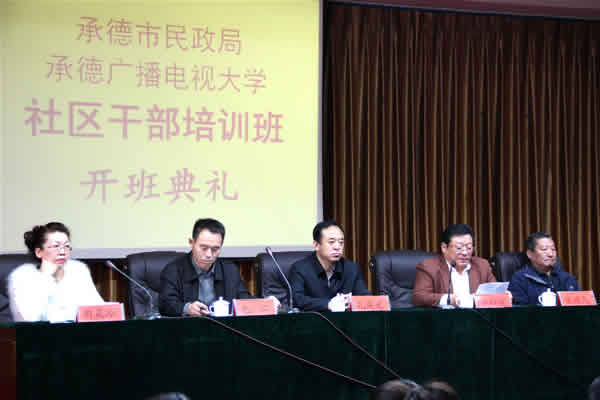 为提升社区干部的整体素质,提高我市和谐社区建设水平,加快学习型城市的构建脚步,我校社区教育学院与市民政局联合举办了为期两天的社区干部培训班。10月30日举行了开班典礼。承德市政协副主席、承德广播电视大学校长孔庆龙、承德广播电视大学党委书记姚钢乾、市民政局副局长巴江、承德广播电视大学社区教育处处长周晨玲、市民政局基层组织与社区建设科科长陈建民出席了开班典礼。