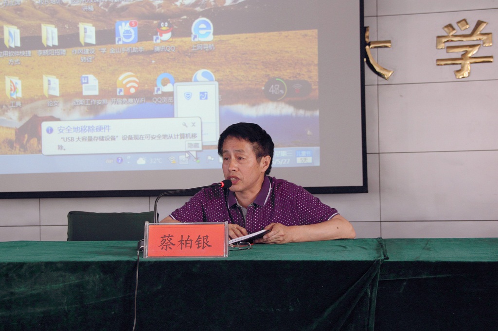 蔡柏银要求广大教职工一是要深刻认识“三严三实”专题教育重大意义,切实把思想统一到中央、省委、市委的要求上来;二是准确把握专题教育总体要求,认真贯彻学校的“三严三实”专题教育实施方案;三是开展“三严三实”专题教育要与学校各项具体工作相结合,确保落在实处,取得实效,做到不空,不虚,不偏。(办公室:赵杨 摄影:蔚明)