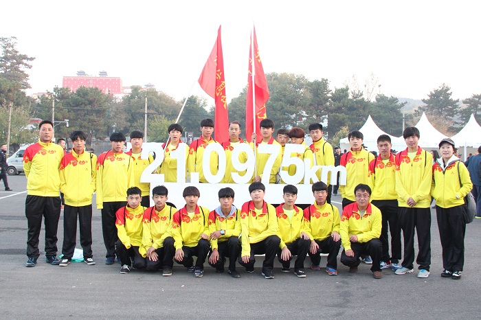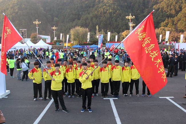 上午8点发令枪响,身着明黄色比赛服的3500多名参赛选手争先恐后冲出起跑线。此次马拉松赛事独具皇家文化特色,不仅吸引了数千名京津冀地区的顶尖跑友,也有完成100天100个马拉松的陈盆滨、著名电视剧导演郭靖宇等跑步界、演艺界的知名人士,同时来自各个跑步俱乐部、跑步团体的选手们也参与其中。赛道路线风景宜人,以贯穿丹霞地貌的棒槌山、皇家园林以及皇家寺庙群为特点,将承德的历史底蕴和文化的博大精深全方位地向所有参赛者展现出来。最终,男子冠军被来自肯尼亚的 MWANGI DANIEL MUCHUNU摘走,他以1小时7分5秒的成绩领先第二名1秒冲过终点。我国选手罗川以1小时14分53秒力压黑人选手夺得女子半程马拉松比赛冠军。我校14春机电班学生高峰、王宗军、张英杰在迷你马拉松(5公里)组别中分别取得了第三名、第四名和第五名的好成绩。