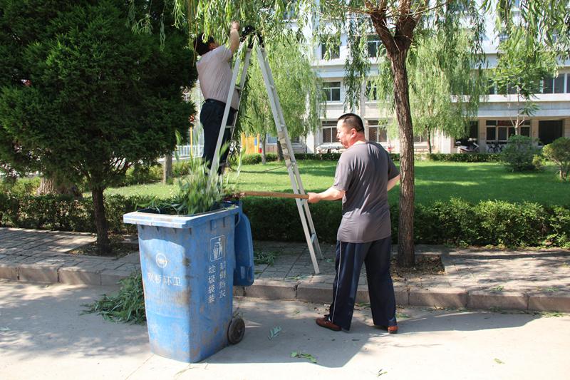 活动中,支部全体党员各负其责,拿起剪刀、铁锹等工具,重点对学校中的树木枝条、杂草进行修剪,经过一下午的修剪,校园绿化树木换了新装,学校更加美丽宜人,活动取得了良好的成效。各位党员虽然汗流浃背但纷纷表示:这是自己应该做的,作为一名党员,更应该处处起到模范带头作用。