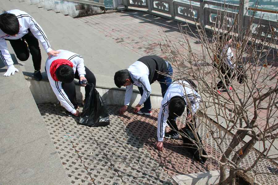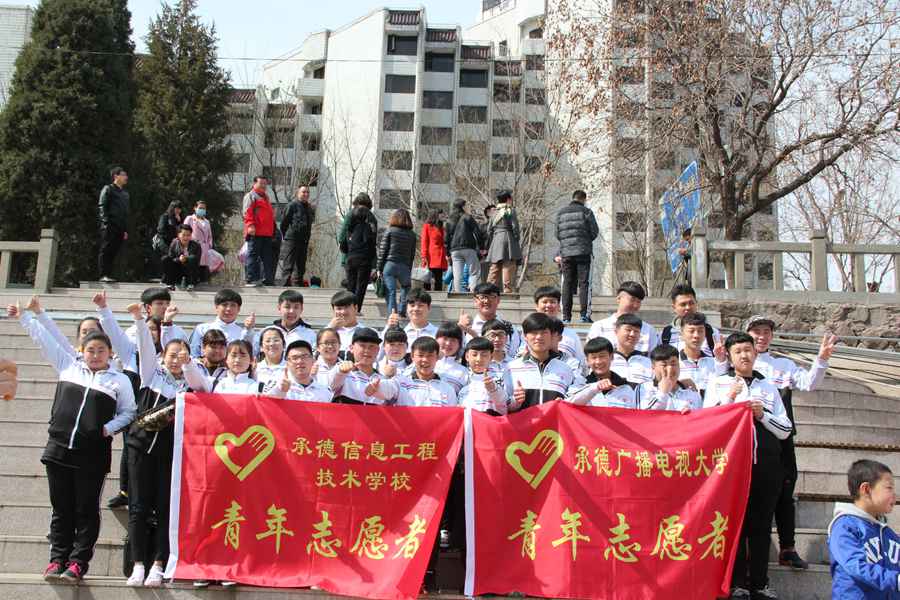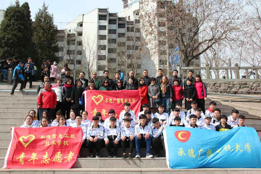 为进一步优化我市旅游环境,使城市天更蓝水更绿,3月26日上午,我校志愿者服务队参加市“爱心联盟”组织的保护母亲河活动,学校党委书记姚钢乾、副校长苏卫兵全程参加了本次活动,志愿者们从万树园停车场出发至云山宾馆滨河广场,沿武烈河两岸对防洪坝上人行道两旁及道旁树丛中的垃圾进行清理,受到沿途市民称赞。