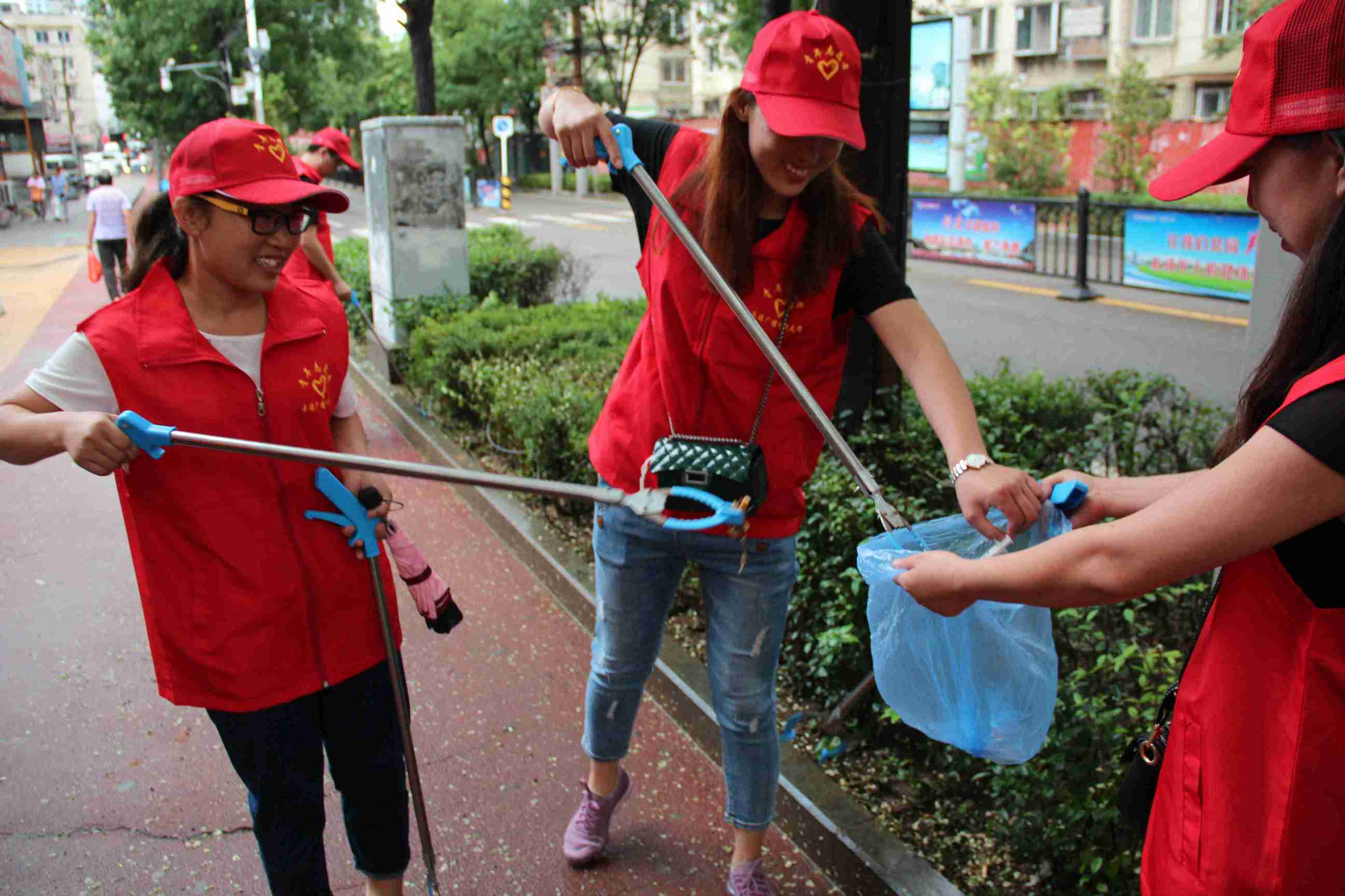 在近两个小时的活动中,志愿者们仔细把街道中的烟头、纸碎屑、饮料瓶、一次性餐具等一一拾起装到袋里倒入垃圾桶。虽然大家有些累,流了汗,脏了手和衣服,但是当看到干净整洁的环境,志愿者们脸上都洋溢着笑容。大家纷纷表示,作为城市的主人,我们有责任和义务让自己的家园更美、更干净,我们捡拾垃圾不仅是净化环境,也是净化心灵。(办公室)