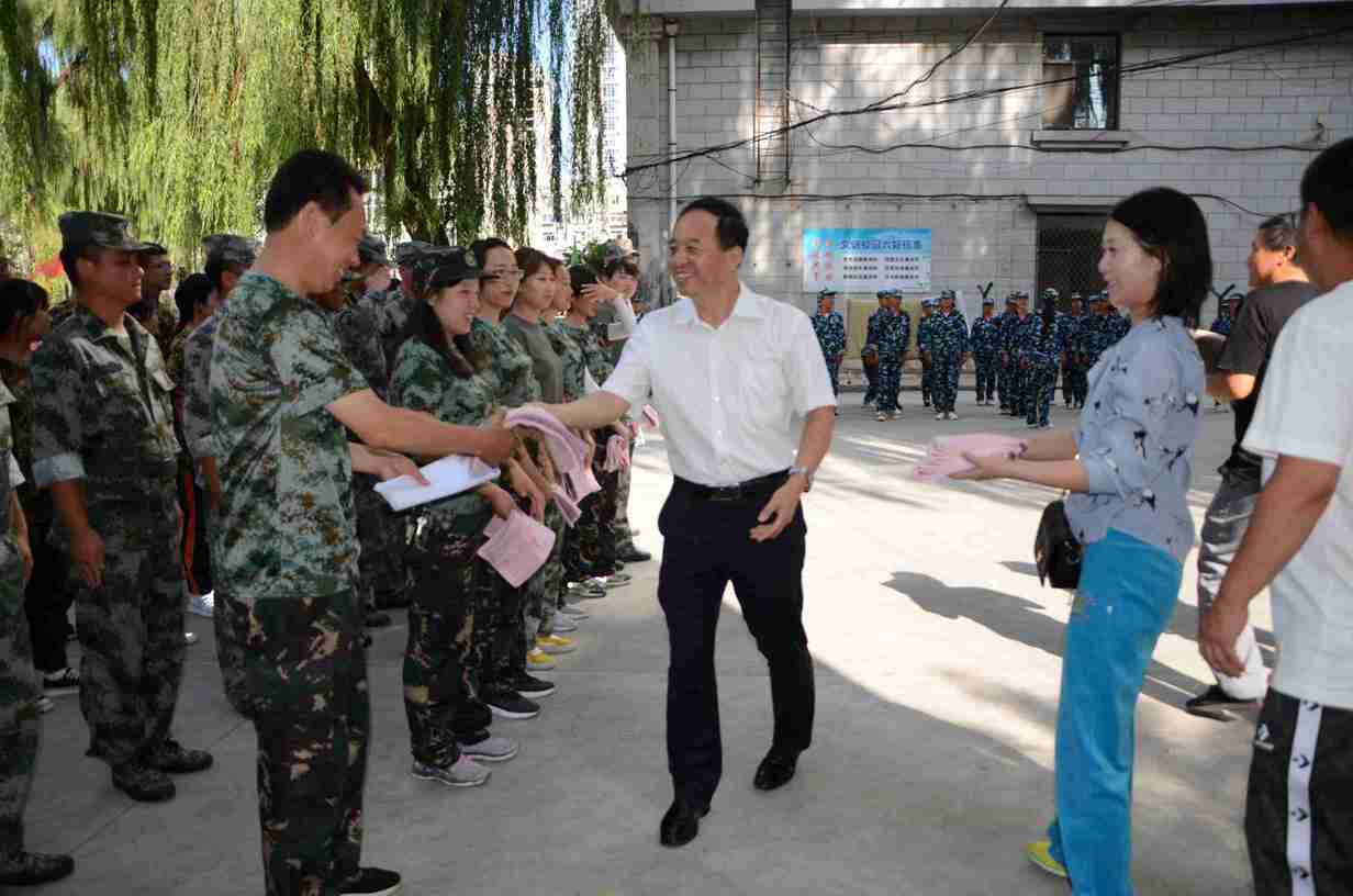 训练场上,同学们精神抖擞、朝气蓬勃,队伍排列整齐有序。孔庆龙向各位教官、学管人员、班主任以及助训学生发放了慰问品,对大家表示亲切的慰问。