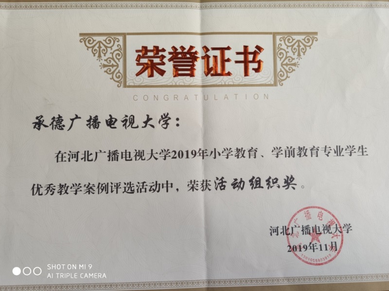 喜讯:我校荣获河北电大2019学前教育专业学生优秀教学案例评选活动“活动组织奖”