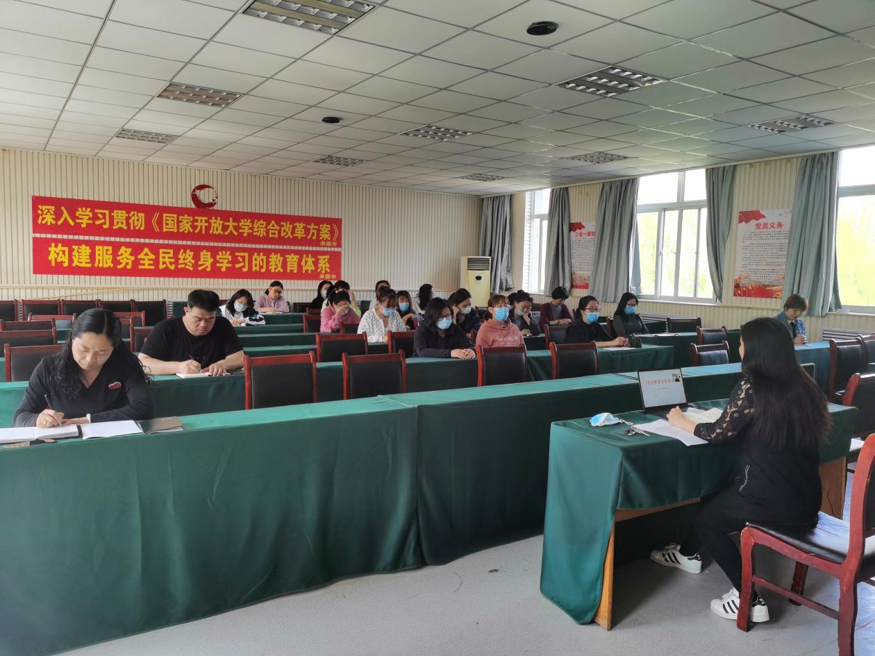 2021年5月11日下午,我校开放教育学院组织召开开放教育教学教务工作培训会议,就2021年春季学期开放教育相关工作进行专题部署,所有开放教育班主任及课程辅导教师参加了会议,各县教学点教师远程参与了视频会。