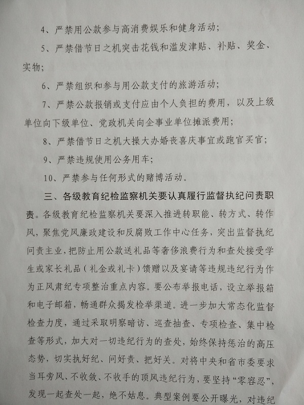 黄树贤指出,中央八项规定出台以来,各级纪检监察机关加强监督执纪问责,“四风”蔓延势头得到遏制,推动党风政风好转。同时必须清醒看到,当前“四风”问题树倒根在,仍停留在“不敢”阶段,远没有做到“不能”,更没有达到“不想”。今年“五一”、端午假期即将到来,要继续盯住具体问题,严肃查处公款吃喝、公款旅游、公款购买赠送粽子节礼等行为,不断发出纠正“四风”的强烈信号。要严格执纪监督,把纪律挺在前面,对顶风违纪问题严查快处,真正把纪律立起来、严起来。要加大问责力度,坚持“一案双查”,对出现严重顶风违纪问题,或“四风”问题禁而不绝的,不仅要追究直接责任,还要追究领导责任;不仅要追究党委主体责任,而且要追究纪委监督责任。要进一步完善督办、通报、监督制度,充分发挥群众监督和媒体监督作用。要着重解决发生在基层和群众身边的生冷硬推、吃拿卡要、与民争利、欺压百姓等作风方面的突出问题,严肃查处小官巨腐等基层腐败问题,以党风廉政建设和反腐败工作的实际成效取信于民。