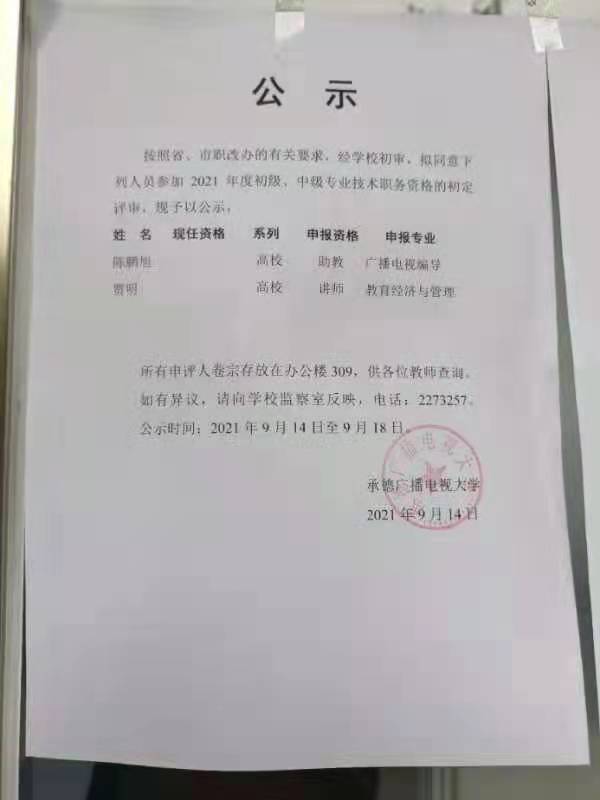 2021年度中级职称评审的公示