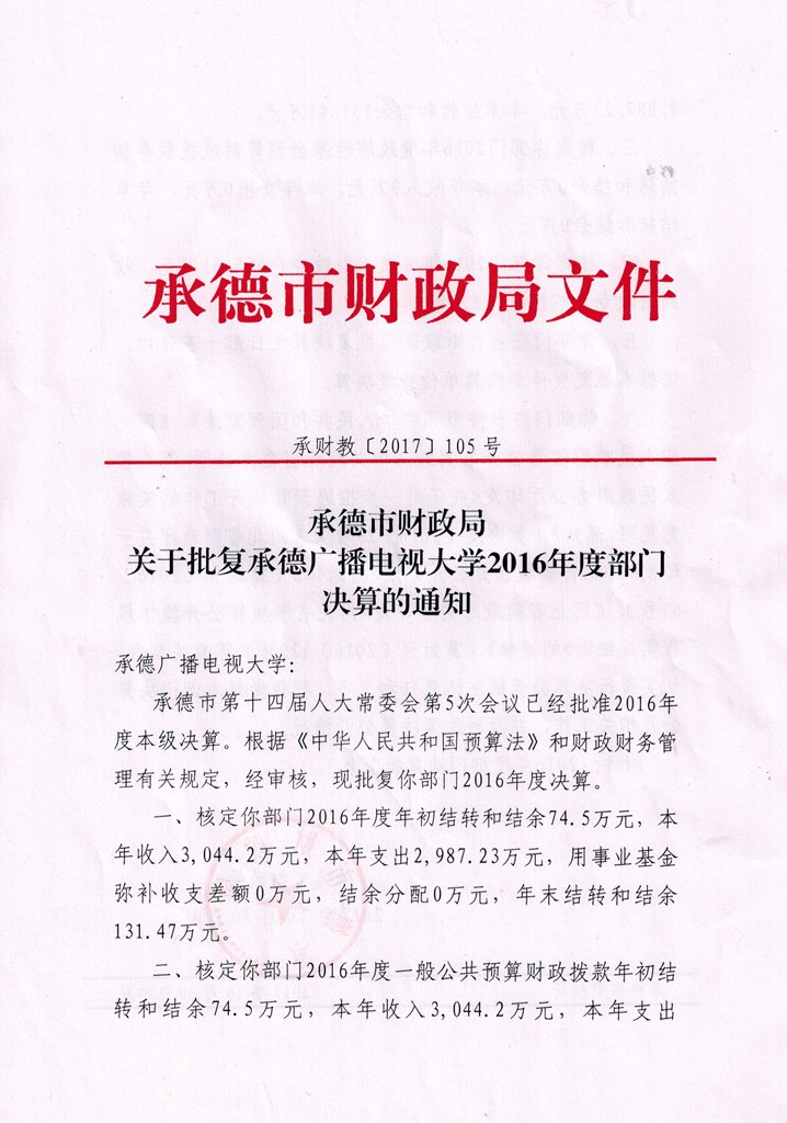 承德广播电视大学2016年度决算公开目录