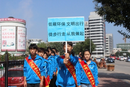 为倡导健康、低碳的生活方式, 9月25日上午我校组织部分师生举行了以“低碳环保、文明出行、徒步行走、从我做起”为主题的徒步行走活动。
