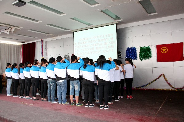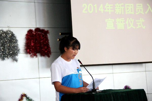 主持人介绍了发展新团员的相关情况,宣读了新团员名单。新入团的58名新团员由老团员们亲手佩戴了团徽,并在主持人带领下进行了庄严的宣誓。老团员代表赵欣同学和大家分享了加入共青团以来的体会和成长经历,新团员代表刘小凡同学发表了感言,表达了对共青团的认识和热爱。