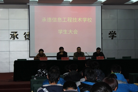 2014年12月3日晚七点,我校在3号楼6楼会议室召开中专部全体学生大会,副校长苏卫兵、中专部主任杨立军、副主任柴德善、许海燕及中专部全体班主任、学生参加了会议,主任杨立军主持会议。