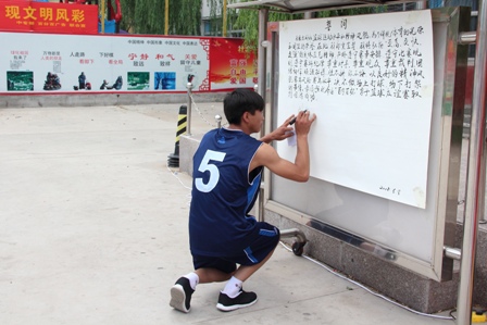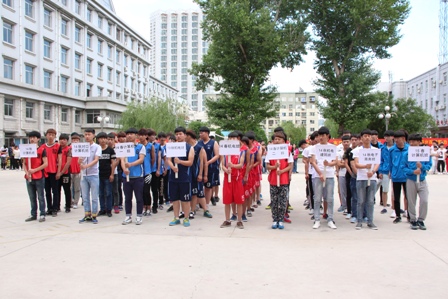 为了丰富我校学生的课余生活,提高学生的综合素质、增强学生团队精神和集体凝聚力、展现学生积极向上的风貌,由校团委主办的“百分百杯”男子篮球友谊赛于 2015 年6 月 8日下午 4 时在我校新篮球场拉开了帷幕。出席开幕仪式的领导有承德市政协副主席、承德信息工程技术学校校长孔庆龙,承德信息工程技术学校副校长苏卫兵及承德信息工程技术学校中专部相关领导。开幕式上,裁判员、参赛队员着装整齐划一、斗志昂扬入场,充分展示了我校学生奋发向上、积极进取的良好精神风貌。苏卫兵副校长致开幕词并做精彩讲话, 他鼓励参赛队员顽强拼搏、 赛出竞技水平、 赛出道德风尚、赛出个性风采、赛出团结友谊;激励裁判员们公平公 正裁判,保证比赛顺利进行。他的精彩言辞中包含着对本次篮球赛的期待与祝福,同时也宣布了本次球赛“安全定义,友谊第二,比赛第三” 的宗旨。 充分诠释了举办此次篮球赛的目的。 随后为保证赛事的公平, 公正性,裁判代表,运动员代表各进行了一次宣誓及签字仪式。承德市政协副主席、承德信息工程技术学校校长孔庆龙宣布球赛正式开始,13秋机电班与14春机电班开始了激烈精彩的首场比赛。