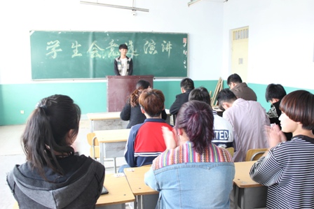 2015年4月,为了让校学生会吸取更多精英,也为了学生会的体制更加完善,扩大校学生会在校内校外的影响,承德电大组织学生举行了学生会竞选活动。为了保证竞选的顺利进行,特成立由中专部书记陈强、副主任柴德善、学生科科长王鑫,团委教师边颖及上届学生会代表组成的竞选委员会。根据应聘的职位,各候选人按照所抽取的编号进行演讲和答辩,评委根据综合情况进行打分。演讲过程中,同学们都提到了自己对学生会的认识,充分认识到了学生会的重要性,同时还表明了自己强烈的责任感和使命感,希望通过加入学生会不断提升自己的能力,更好的为大家服务。各位竞选者表现出了较高的综合素质,博得了现场评委和同学们阵阵喝彩与掌声。整个选拔活动进行得紧张有序。(中专部)