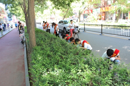 烈日炎炎下,我校志愿者们分别对桃李街绿化带和小区内进行了垃圾清扫及各类小广告的清理,志愿者们不怕脏、不怕累,认真完成活动任务,努力清扫垃圾死角。青少年宫和桃李街社区的领导对我校的青年志愿者给予了高度的评价。