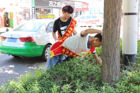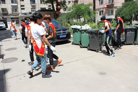烈日炎炎下,我校志愿者们分别对桃李街绿化带和小区内进行了垃圾清扫及各类小广告的清理,志愿者们不怕脏、不怕累,认真完成活动任务,努力清扫垃圾死角。青少年宫和桃李街社区的领导对我校的青年志愿者给予了高度的评价。
