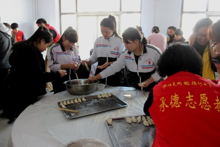 2017年3月5日,在第54个学雷锋日、第18个“中国青年志愿者服务日”来临之际,我校青年志愿者服务队携手承德市爱心联盟市直分会、承德市盲人协会等多个志愿者服务队来到我市社会福利院开展志愿服务活动,活动中志愿者们打扫卫生、给老人理头发、陪老人聊天、包饺子。我校青年志愿者参加包饺子活动,大家纷纷表示能为福利院的老人做些贡献感到非常自豪,日后要常来看老人,让学习雷锋精神成为一种习惯。